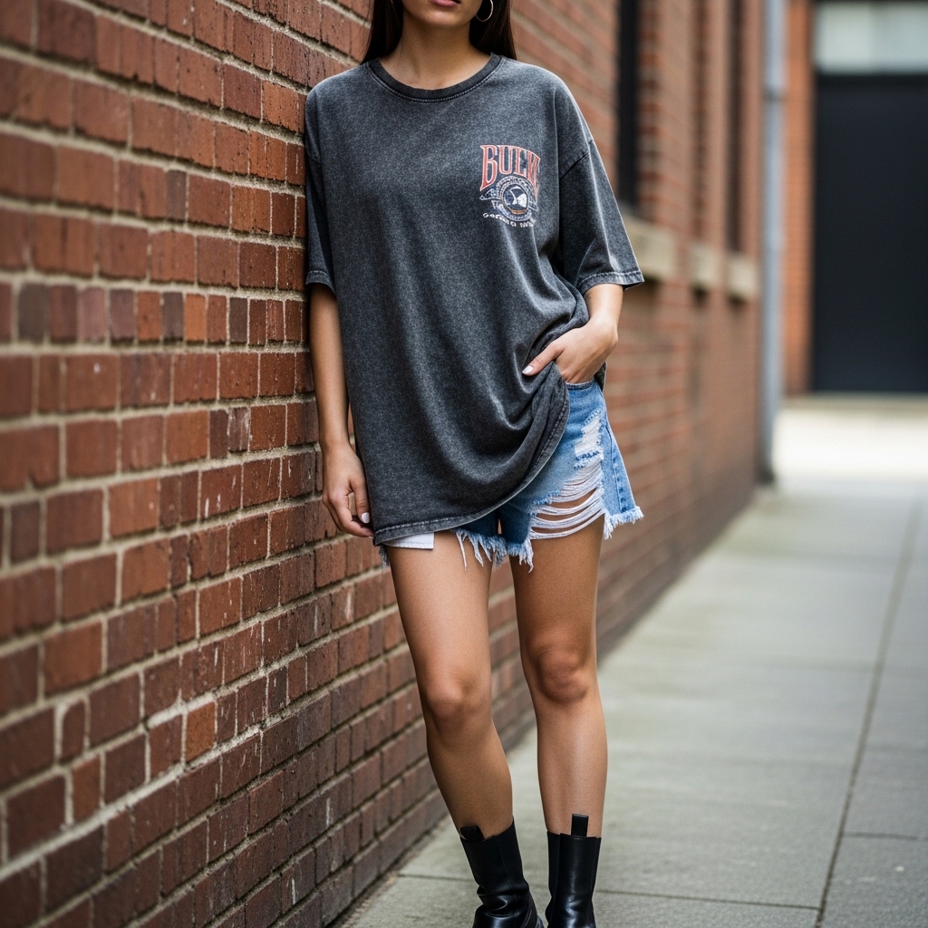 Kullanım Avantajları: Füme rengin verdiği doğal solgunluk, jean pantolonlar ve deri ceketlerle mükemmel bir uyum yakalar. Taytların üzerine dökümlü bir şekilde bırakılarak veya şortların içine sokularak farklı tarzlara kolayca adapte edilebilir.