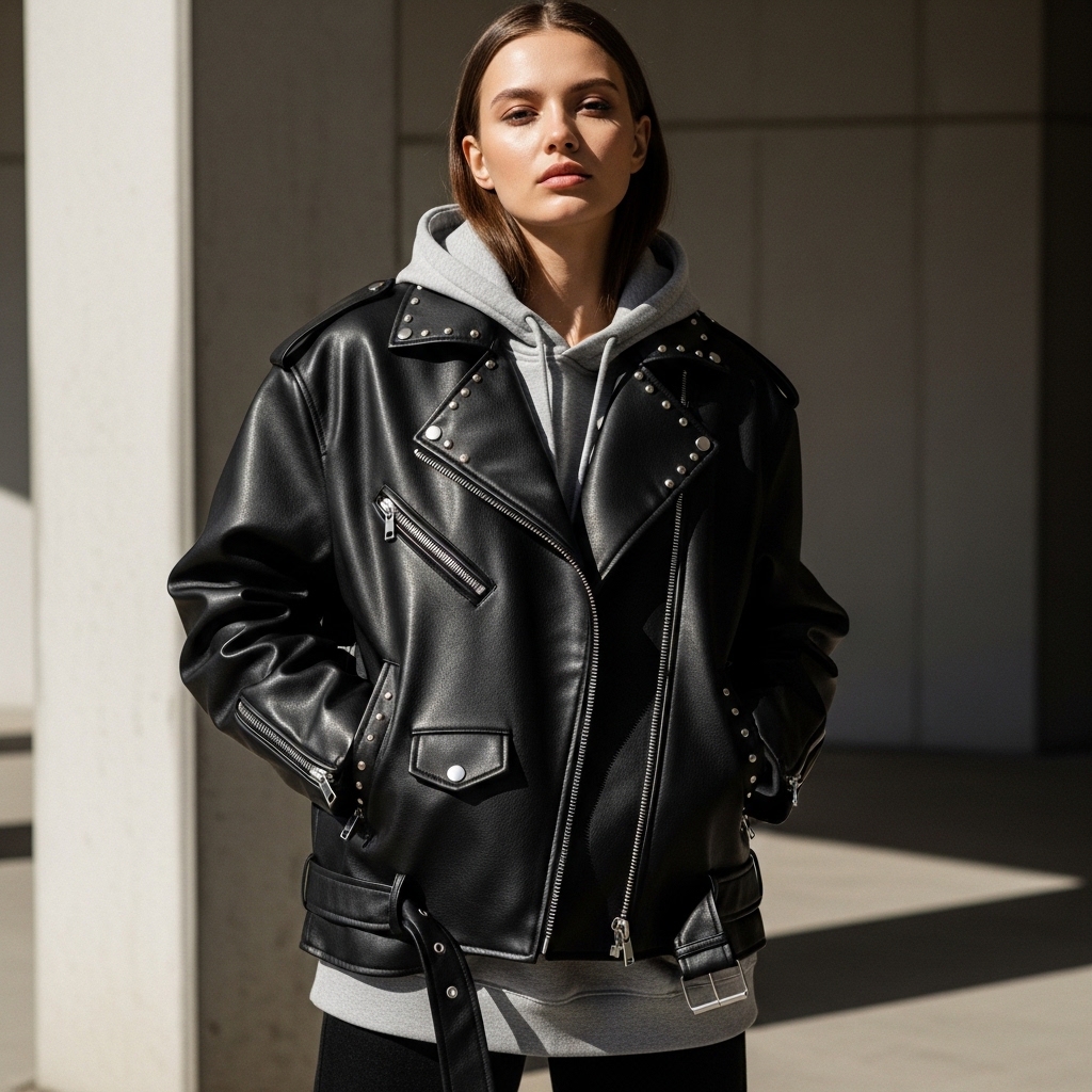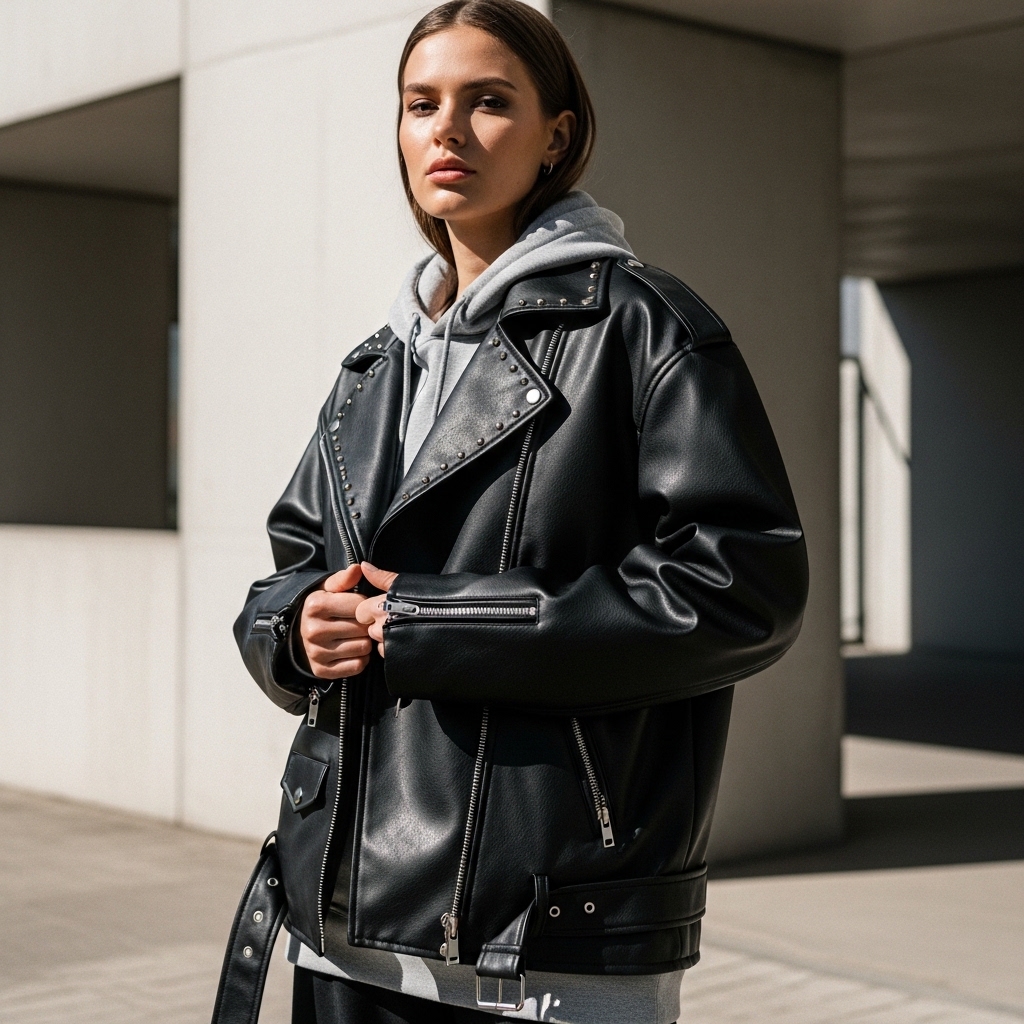 Kullanım Avantajları: Uçuş uçuş saten elbiselerle kombinlenerek "rock-chic" bir kontrast yaratılabilir veya sadece bir beyaz tişört ve jean ile günlük şıklığın dozu artırılabilir. Geniş kesimi sayesinde içine kalın trikolar giyilmesine de imkan verir.