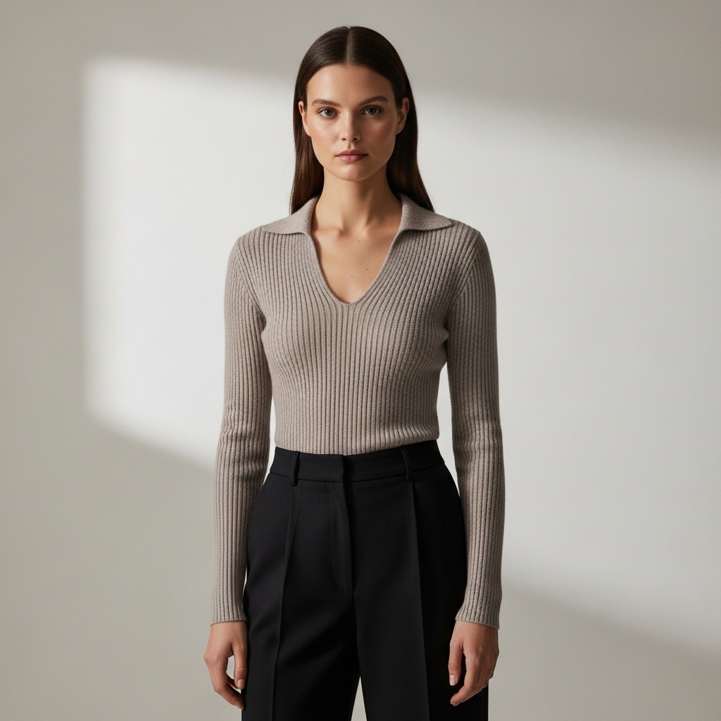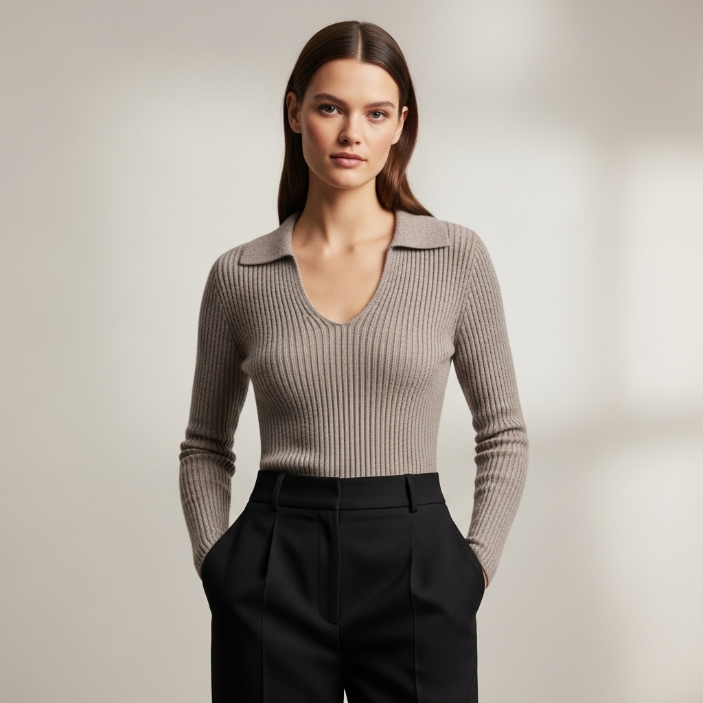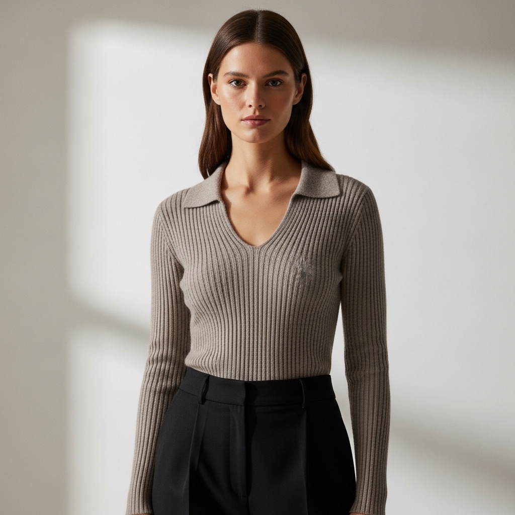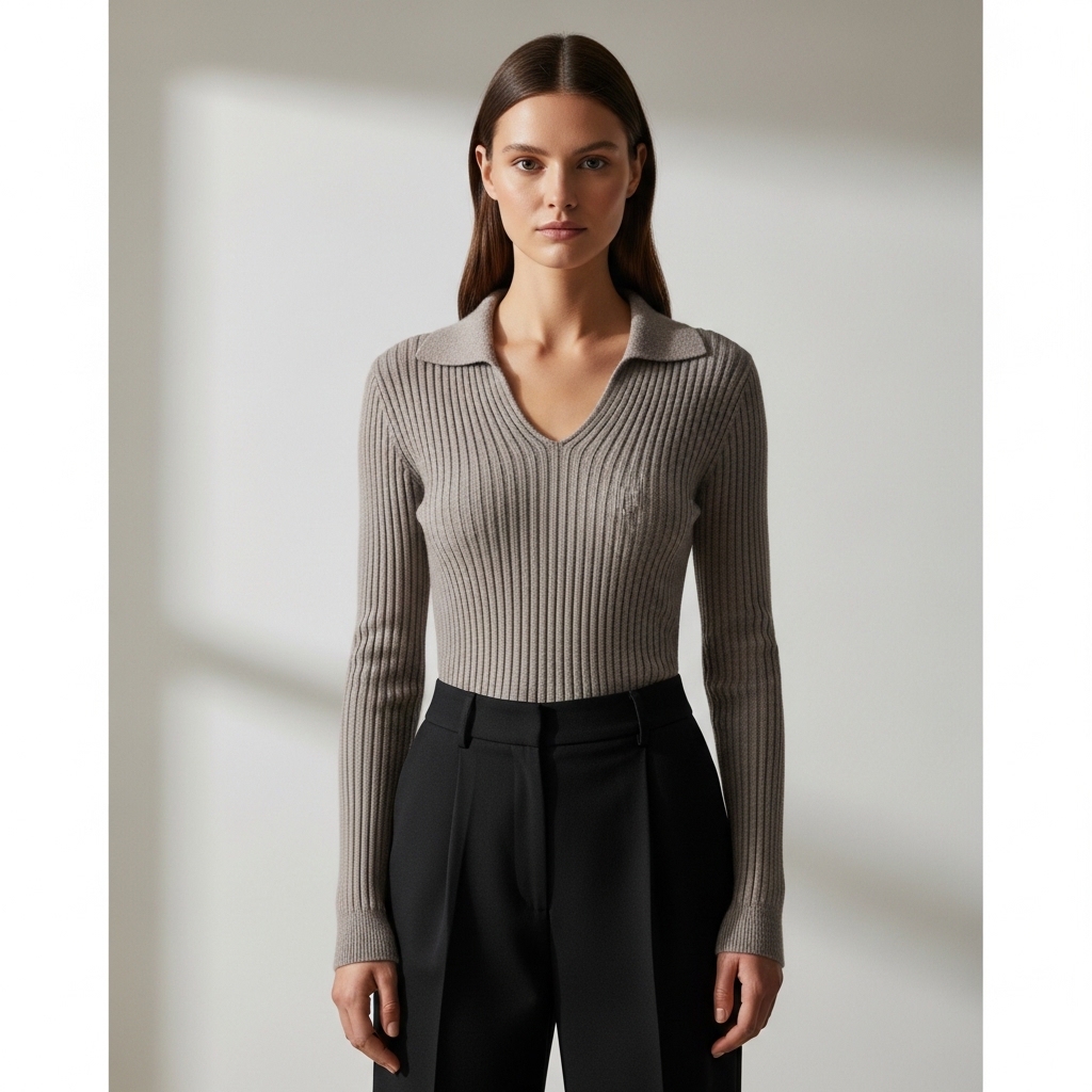 Tasarım Detayları: Derinliği titizlikle ayarlanmış V yaka kesimi, boyun bölgesini daha uzun ve zarif gösterir. Boyuna uzanan ince fitil (ribana) detayları, silüeti daha fit ve ince algılatır. Manşetlerdeki hafif uzun kesim ve dikişsiz bitişler, premium bir görünüm sunar.