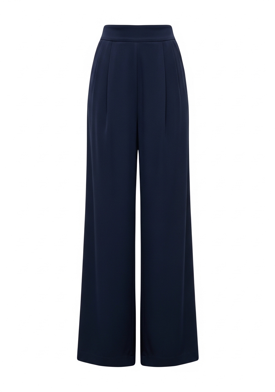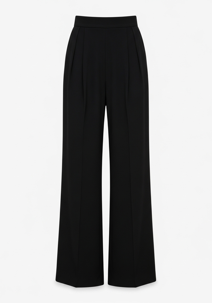 Dökümlü kumaşı ve yüksek bel kesimi ile hem şık hem rahat bir görünüm sunan wide leg pantolon. Ofisten günlük hayata her ortamda rahatlıkla kullanabilirsiniz.